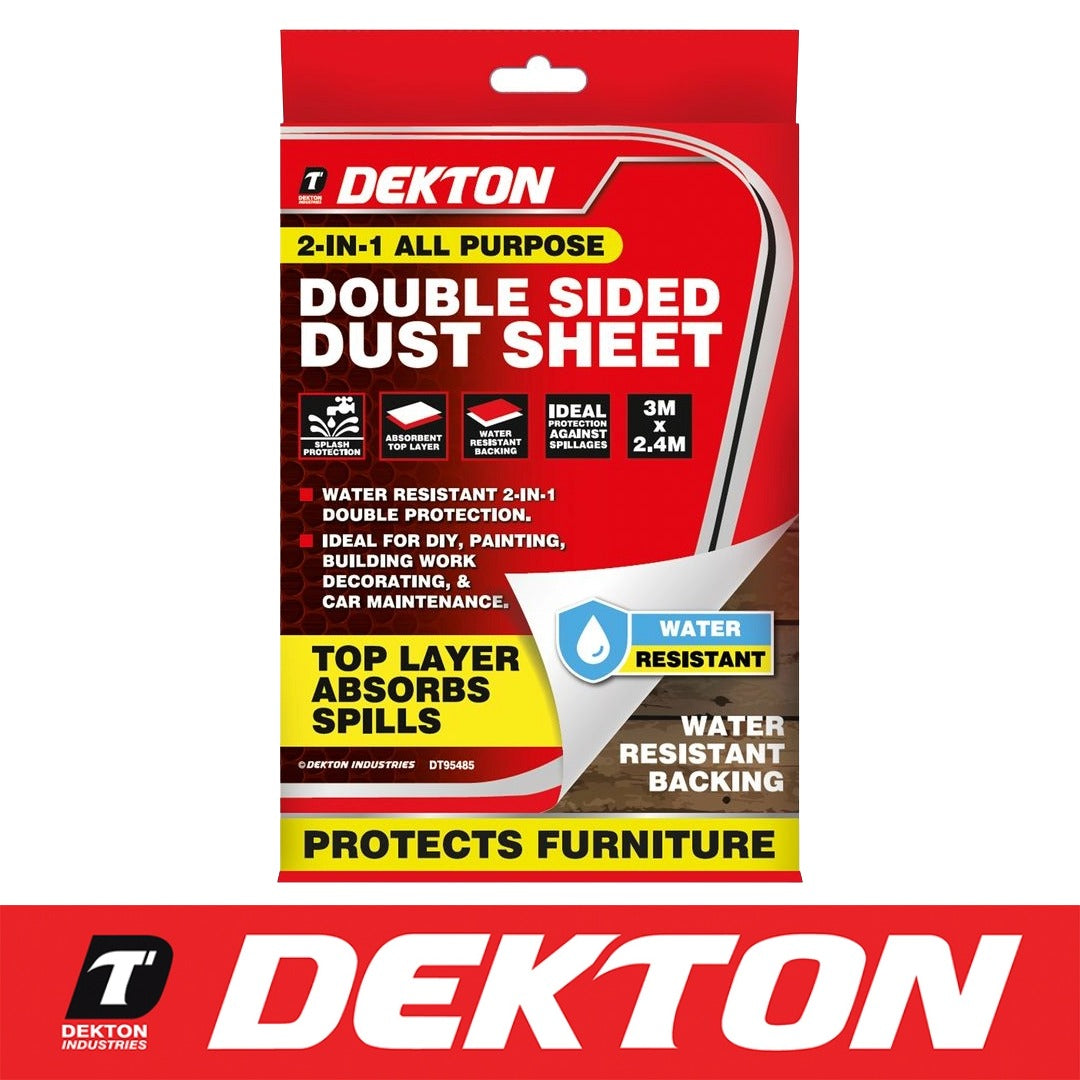 - Dekton Double Sided Dust Sheet Water Resistant Protection Painting 3m x 2.5m DIY Dekton Double Sided Dust Sheet Water Resistant Protection Painting 3m x 2.5m DIY