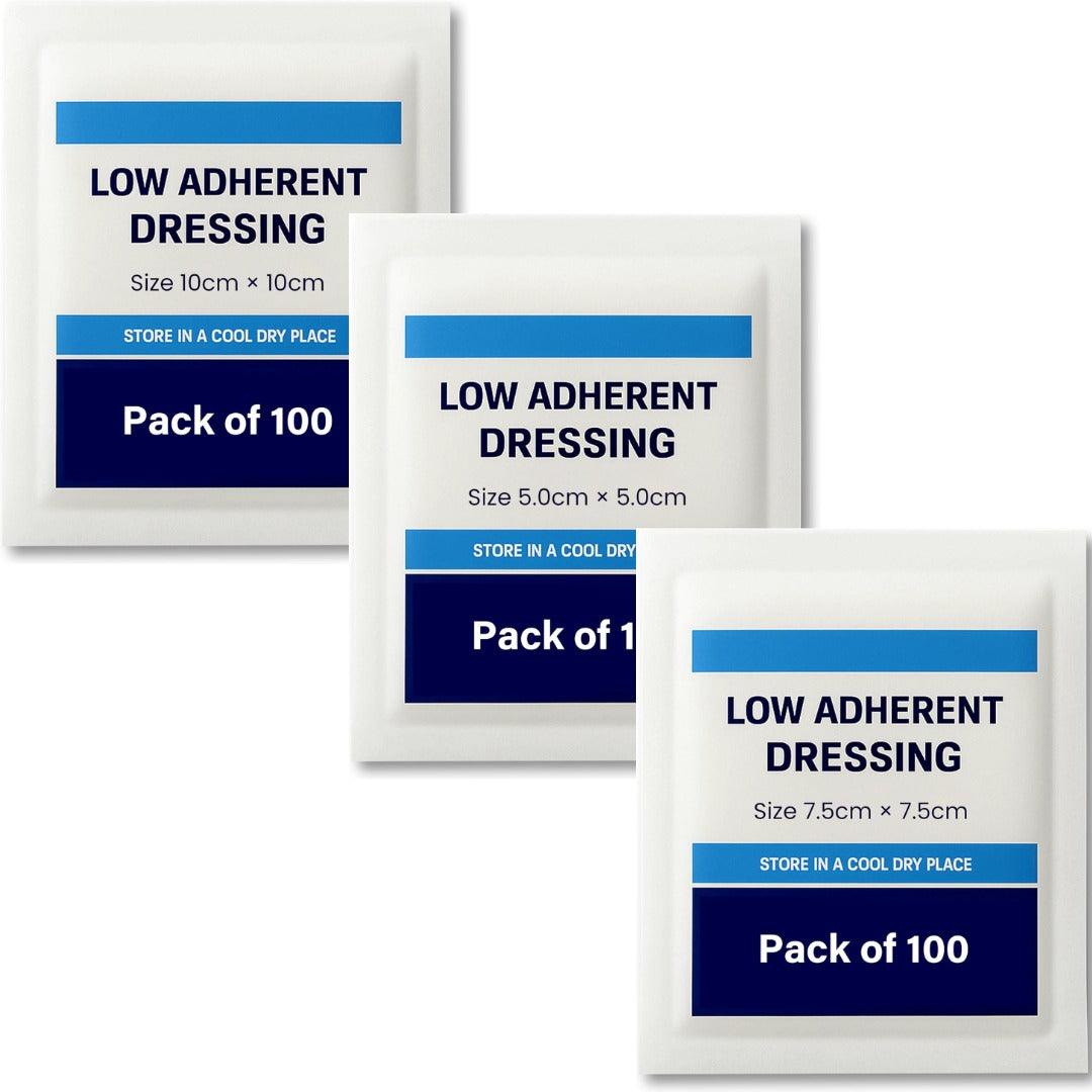- Low Adherent Dressing Pads 100 Pack Sterile Non Stick Wound Dressings 5/7.5/10cm Low Adherent Dressing Pads 100 Pack Sterile Non Stick Wound Dressings 5/7.5/10cm